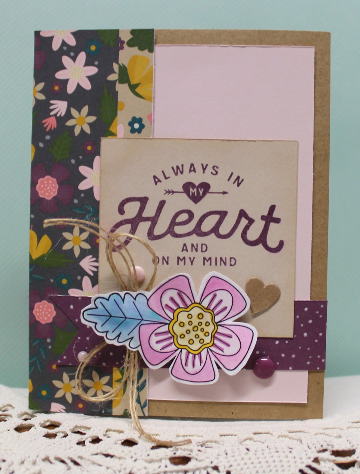 Love that stamped flower! Such a perfect pairing with that sweet floral paper!